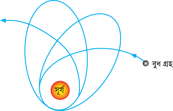 চিত্র: সূর্যের চারদিকে বুধ গ্রহের কক্ষপথ ক্রমশঃ দিক পাল্টাচ্ছে।