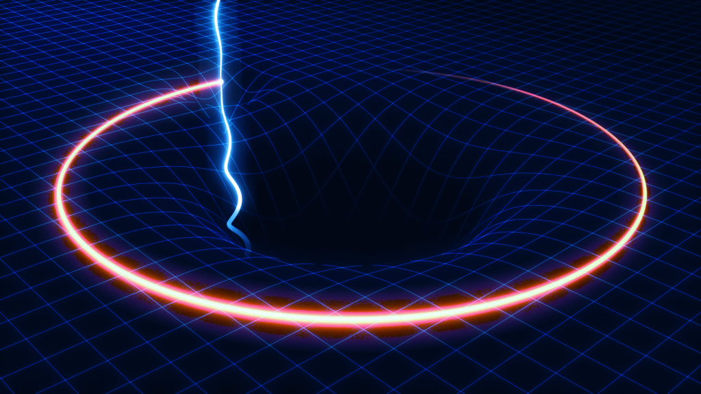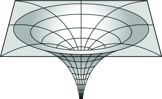 এবার চিন্তা করা যাক ব্ল্যাকহোলদের মতো দানবদের কথা। এদের ভর এতই বেশি যে, এরা এদের আশপাশের স্থানকালকে নির্দয়ভাবে এমনভাবে বাঁকাবে যে বক্রতা হবে শুধুই অন্তর্মুখী। অর্থ্যাৎ, এই বক্রতায় প্রবেশের দরজা থাকবে কিন্তু বেরুবার দরজা থাকবে না। গ্রামে বর্ষা মৌসুমে পুকুরে মাছ ঢোকানোর জন্যে দুটি বেড়া এমনভাবে মুখোমুখি লাগানো থাকে যে পুকুরে প্রবেশের সময় মাছ ঐ বেড়ার ফাঁক দিয়ে চলে যেতে পারবে কিন্তু পুকুর থেকে বেরোতে পারবে না। ব্ল্যাকহোলের কাজও অনেকটাই এরকম। এ কারণেই আলোর কোনো ভর না থাকলেও এটি ব্ল্যাকহোলের ফাঁদে পড়ে যায়। দূর থেকে আসা আলো ব্ল্যাকহোলের ঘটনা দিগন্তের ভেতরে চলে গেলে আর বের হবার রাস্তা পাবে না। ফলে ঘটনা দিগন্তের ভেতরের কোন কিছু আমরা দেখতে পাবো না।