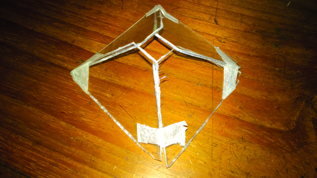 - ৩. এবার গ্লু বা টেপ দিয়ে ট্রাপিজিয়াম চার টিকে চিত্রের মত জোড়া লাগিয়ে একটা পিরামিড তৈরি করো।