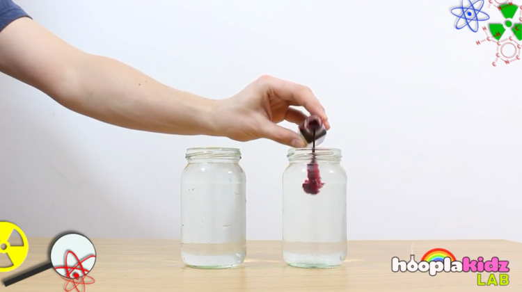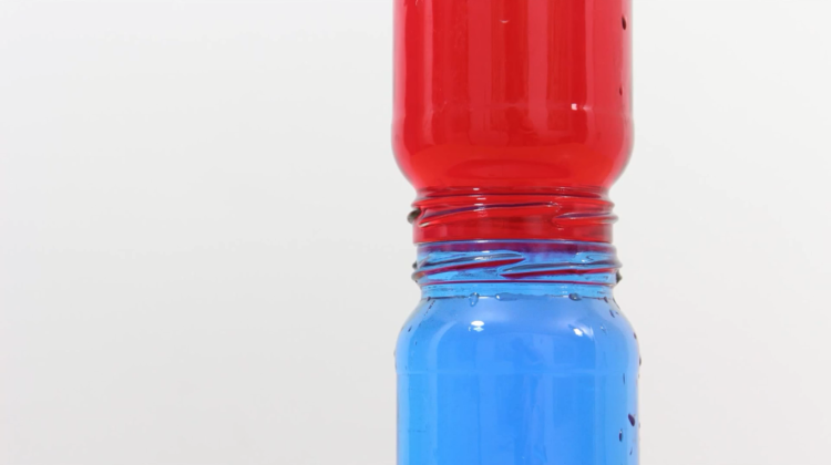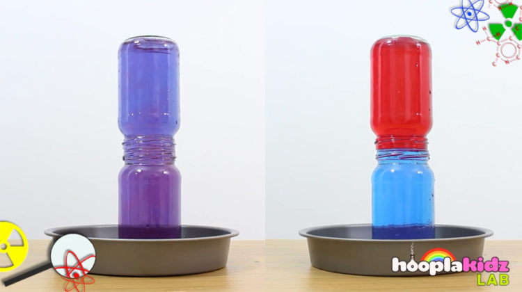 প্রথমে দুইটি জারে যথাক্রমে ঠাণ্ডা ও গরম পানি পূর্ণ করে ঢাল। এরপর গরম জারে যেকোন একটি রং যেমন- লাল রং মেশাও।