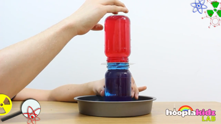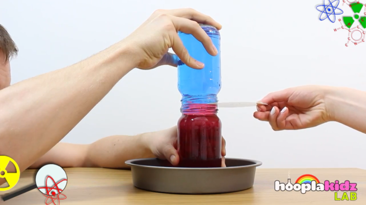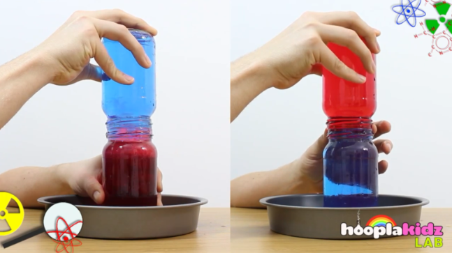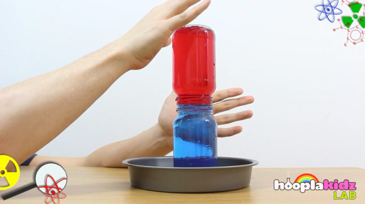 এবার উল্টোটা কর। ঠাণ্ডা পানি নিচে এবং গরম পানি উপরে দাও। তারপর আস্তে আস্তে কার্ডটি সরিয়ে নাও।