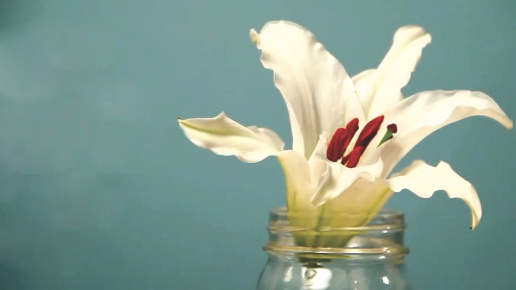 প্রথমে একটি সাদা ফুল হালকা গরম পানিপূর্ণ কাঁচের জারে নাও