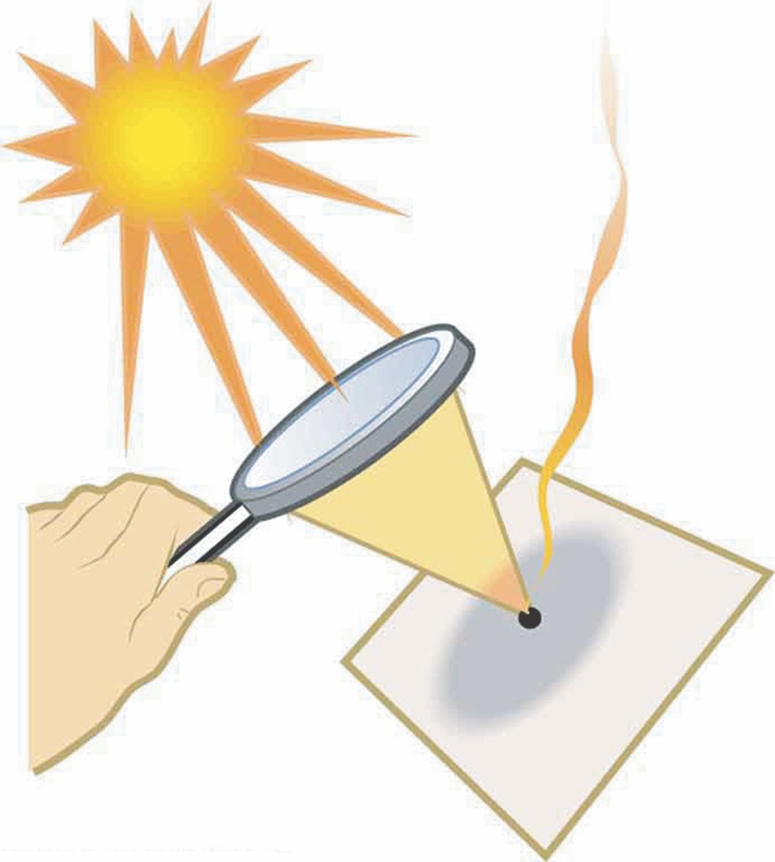 কিছুক্ষণ কাঁচটি ধরে রাখলে দেখ কাগজে আগুন ধরে গেছে। এভাবে যত ইচ্ছে যতবার ইচ্ছে বিনামূল্যে আগুন ধরাতে পার।