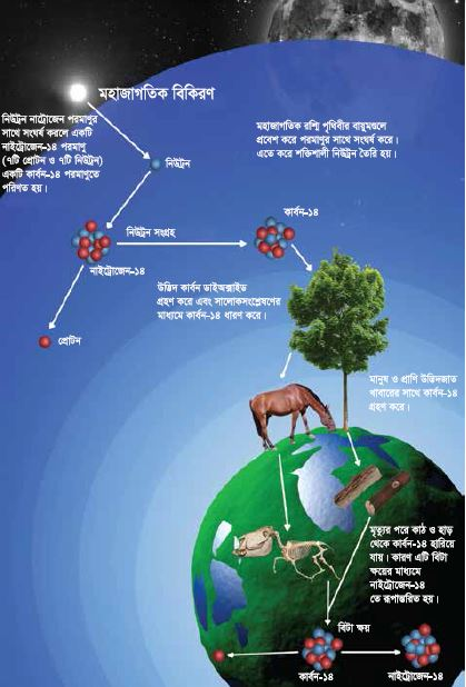কার্বনের জমজ ভাই সম্পর্কে অনেকেই জানে না। সূর্য থেকে আসা উচ্চ শক্তির মহাজাগতিক রশ্মি অনবরত আমাদের গ্রহে আছড়ে পড়ছে। নিউট্রন সমৃদ্ধ এমন রশ্মি বায়ুমণ্ডলের নাইট্রোজেনের সাথে বিক্রিয়া করে তৈরি করে কার্বন-১৪ বা সি-১৪, যা কার্বন-১২ এর একটি আইসোটোপ।