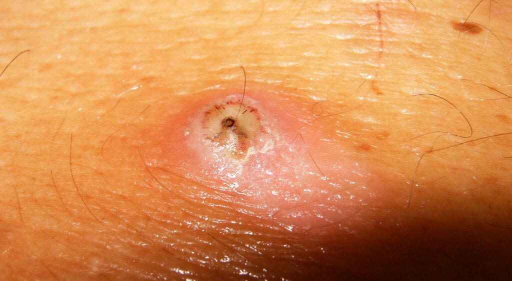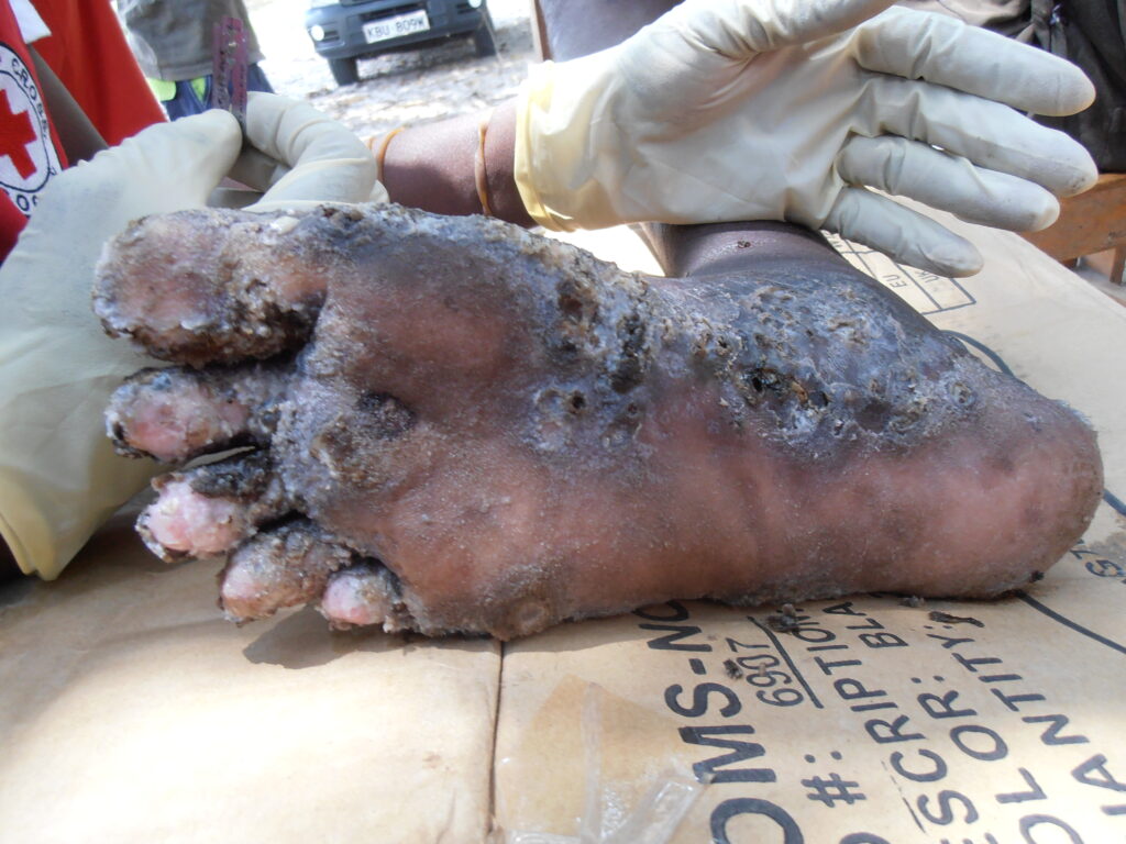 চিত্র-৫: টুনগা পেনেট্রান্স মাছির কামড়ে ক্ষতিগ্রস্থ পায়ের চিত্র