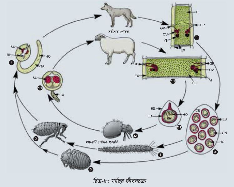 চিত্র-৬: মানুষ বা প্রাণির শরীরে লার্ভার জন্ম