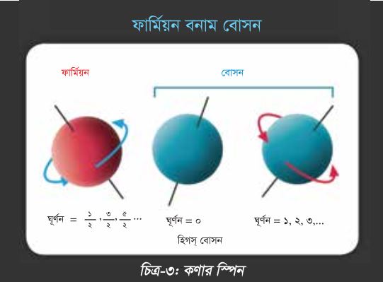 বোসনগুলোর স্পিন সর্বদা পূর্ণসংখ্যা হয়। যেমন- শূন্য, এক, দুই, তিন ইত্যাদি। হিগস-বোসনের স্পিন সংখ্যা শূন্য। অপরদিকে, গেজ বোসনের স্পিন সংখ্যা ১। উদাহরণস্বরূপ, ফোটন, গ্লুওন – এদের স্পিন সংখ্যা ১। ব্যতিক্রম কেবল গ্র্যাভিটন। এর স্পিন সংখ্যা দুই। আগেই বলেছি, মহাকর্ষ বলবাহী কণার নাম গ্র্যাভিটন। মহাকর্ষ সব সময়ই একটু অন্যরকম আচরণ করতে পছন্দ করে। মহাকর্ষ স্থান-কালের বৈশিষ্ট্য বহন করে। আইনস্টাইনের দূরদৃষ্টি অনুসারে, হয়তো এটাই মহাকর্ষের নানা অদ্ভূত আচরণের অন্যতম কারণ।