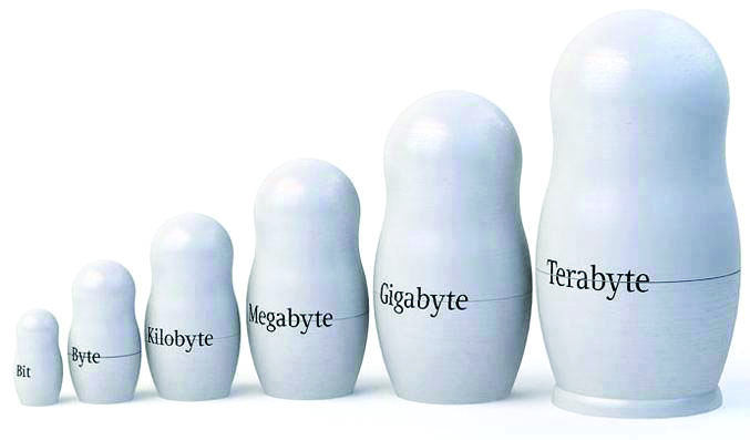 যেহেতু কম্পিউটার তার মেমোরিতে ড্যাটাকে বাইনারি আকারে রাখে তাই, সাধারণত কম্পিউটার মেমোরির ২ এর গুণিতক আকারে প্রকাশ করা হয়।