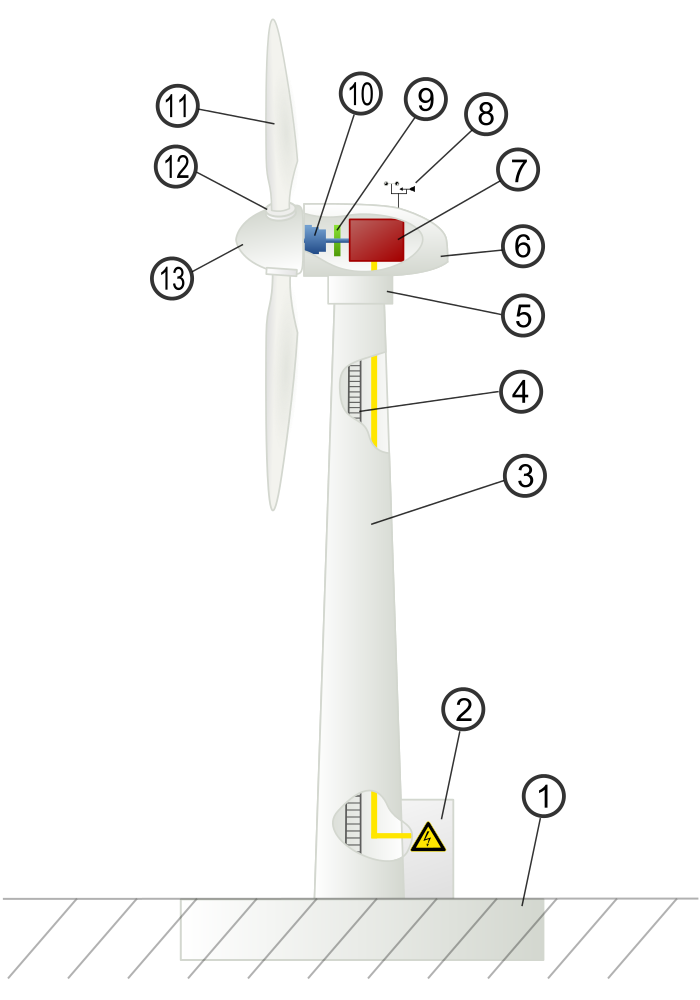 চিত্র-২: উইন্ড টারবাইনের বিভিন্ন অংশ