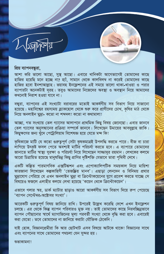 আরেকটি গুরুত্বপূর্ণ বিষয় জানিয়ে রাখি। উপরেই উল্লেখ করেছি দেশে এখন ইনফ্লেশন চলছে। এর থেকে কিন্তু ব্যাপন পরিবারও মুক্ত নয়। তাই তোমাদের কাছে নিরবচ্ছিন্নভাবে ব্যাপন পৌছানোর স্বার্থে ম্যাগাজিনের মূল্য পরবর্তী সংখ্যা থেকে বৃদ্ধি করা হবে। এবারেই করা যেতো। তবে তোমাদের না জানিয়ে করাটা যৌক্তিক ঠেকেনি।