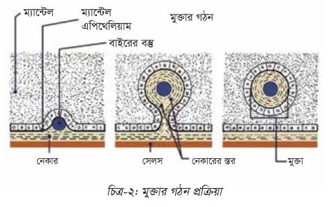 সব ধরনের মলাস্ক কমবেশি মুক্তাজাতীয় কোন পদার্থ তৈরি করে । তবে বাণিজ্যিকভাবে যেসব মুক্তার গুরুত্ব আছে তা তৈরি করে শুধু দুই ধরনের মলাস্ক- বাইভালভ ও ক্ল্যাম্প। স্বাদুপানির ও লোনাপানির মলাস্ক মুক্তা তৈরিতে ব্যবহৃত হয়।