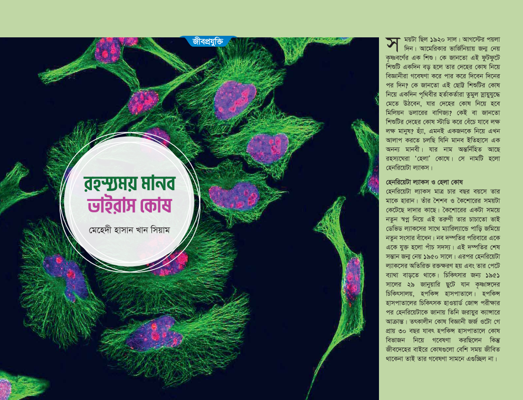 তোমরা নিশ্চয় জানো যে সম্প্রতি ভারতীয় মহাকাশ গবেষণা প্রতিষ্ঠান ইসরোর একটি মহাকাশযান চাঁদের দক্ষিণ মেরুতে অবতরণ করে রেকর্ড করেছে। 'ইসরোর চন্দ্রজয়' শিরোনামে বর্ণিত হয়েছে ২. নিয়েও। ভিনগ্রহে প্রাণীর অস্তিত্ব নিয়ে মানুষের আগ্রহের শেষ নেই। শ্রেফ কল্পনা আর অনুসন্ধানে মানুষ থেমে থাকেনি। ভিনগ্রহী প্রাণী কিংবা এলিয়েনকে উদ্দেশ্য করে পাঠিয়ে দিয়েছে চিঠি। ভয়েজার মহাকাশযানে করে বয়ে বেড়ানো সেই 'ভয়েজার গোল্ডেন রেকর্ড' মানুষের অদম্য কৌতূহল আর অন্তহীন আকাঙ্খার এক উজ্জ্বল দৃষ্টান্ত। জানতে পারবে সেই গোল্ডেন রেকর্ডে কি কি আছে। মানব কোষ যখন রূপ নেয় এক মানব ভাইরাস কোষে, তখন তা একই সাথে রহস্যময় এবং চমকপ্রদও বটে। হেনরিয়েটা নামক এক নারীর কোষ মিউটেটেড হয়ে জন্ম হওয়া সেই ভাইরাস কোষ তার মৃত্যুর পরও আজও তাকে বাঁচিয়ে রেখেছে গবেষণাগারে। এমন চমকপ্রদ কাহিনী নিয়ে জানতে পারবে এবারের সংখ্যায়।