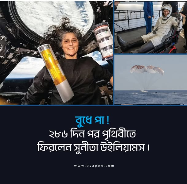 মহাকাশে ৩০০ দিন! অবশেষে পৃথিবীতে ফিরলেন সুনীতা উইলিয়ামস ও বুচ উইলমোর