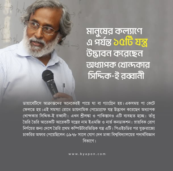মানুষের কল্যাণে এ পর্যন্ত ১৫টি ঔষধ উদ্ভাবন করেছেন অধ্যাপক খোন্দকার সিদ্দিক-ই-রব্বানী। ডায়াবেটিস আক্রান্তদের অনেকেই পায়ে ঘা বা গ্যাংগ্রিনে আক্রান্ত হন। একসময় পা কেটে ফেলতে হয়। এই সমস্যা রোধে ডায়াবেটিক পেডোগ্রাফ যন্ত্র উদ্ভাবন করেছেন অধ্যাপক খোন্দকার সিদ্দিক-ই-রব্বানী। এখন শ্রীলঙ্কা ও পাকিস্তানে এটি ব্যবহৃত হচ্ছে। তাঁর তৈরি তৈরি ডায়াবেটিক অ্যানালগ ইনসুলিনের নাম ইন্সুলিন নর্থ ক্যালকুলাস। স্বাধীনতার পর মুক্তিযোদ্ধাদের চাকরির অধিকার নিশ্চিত করার জন্য তিনি দেশে প্রথম কম্পিউটারভিত্তিক চাকরি পরীক্ষা পদ্ধতি প্রবর্তন করেন।